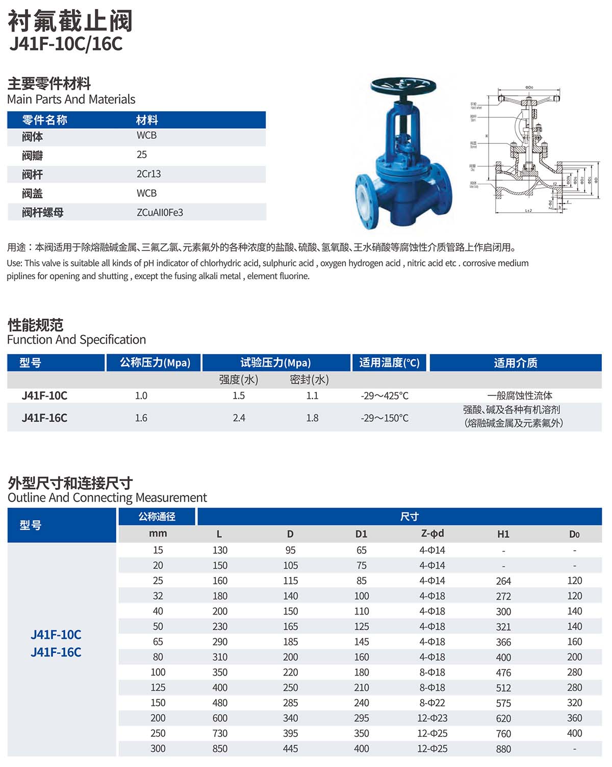 衬氟截止阀 J41F